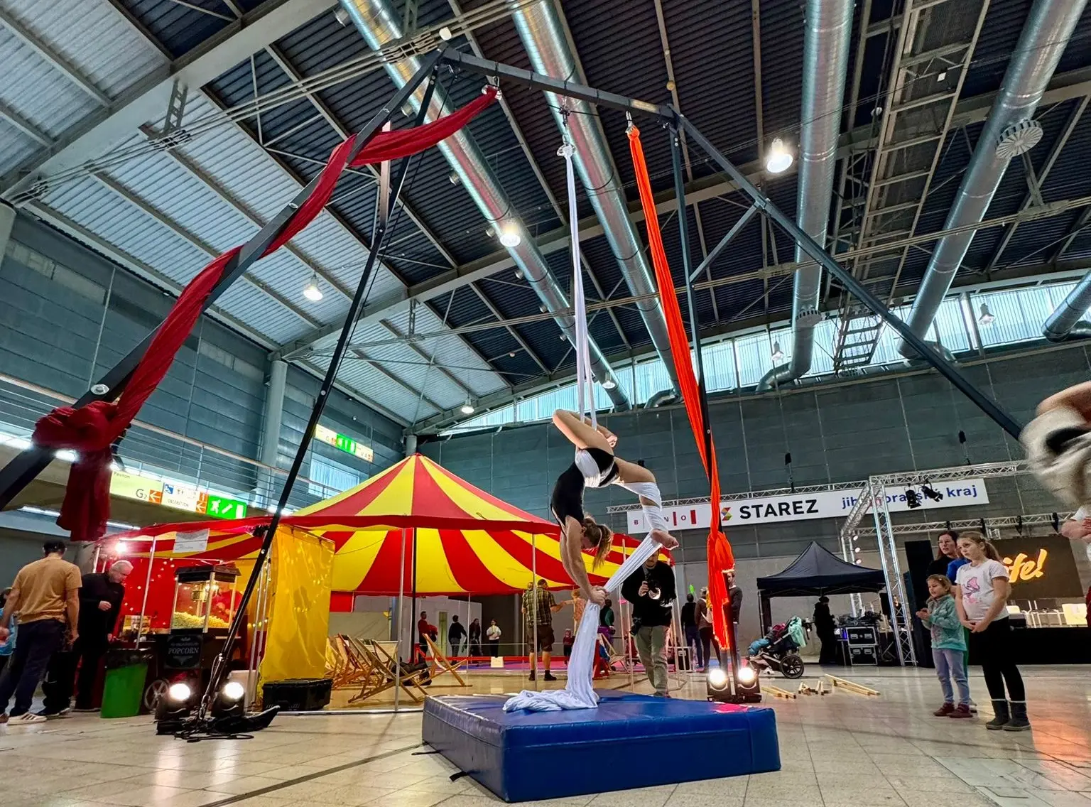 Pro návštěvníky jsme zajistili příjemnou chill zónu v našem stanu, kde mohli posedět s popcornem a točenou limonádou zatímco neposedné děti mohly zkoušet žonglování, chůdy, tvarování z balónků, ale také chůzi po laně či vzdušnou akrobacii na šále a kruhu.